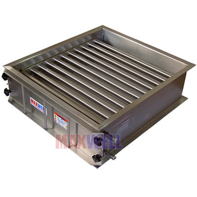 该系列抽屉箱式格栅除铁器,主要安装于超大口径的自由落料的管道中,去除物料中铁质污染物。